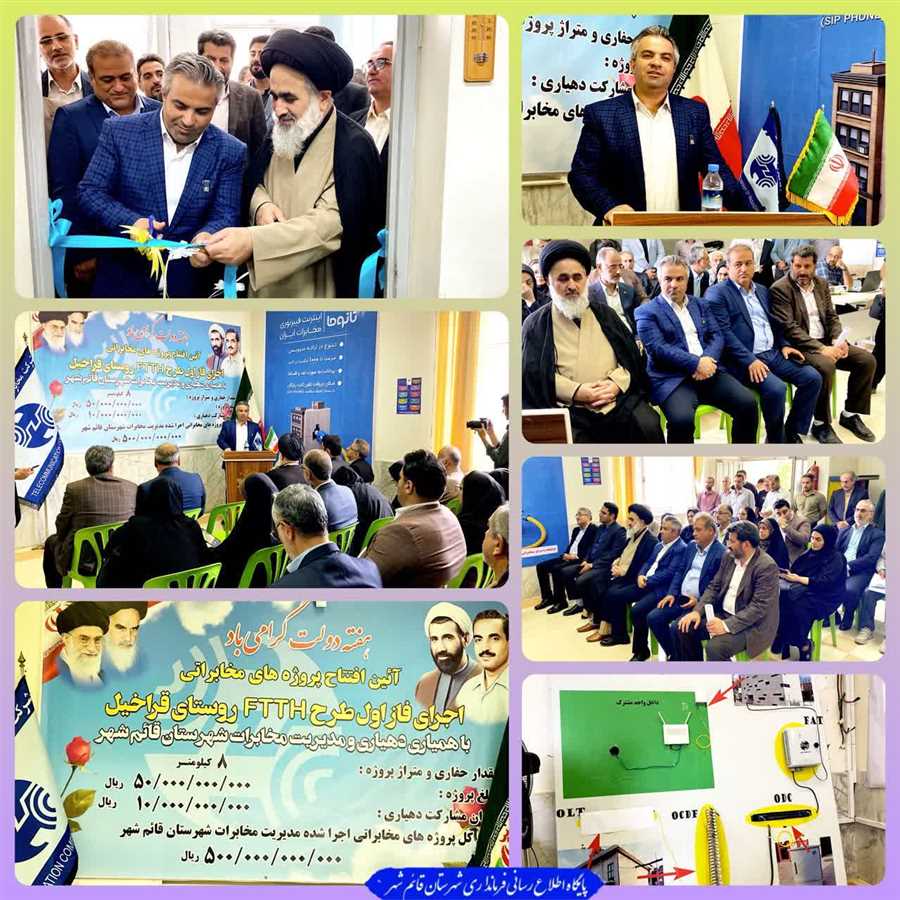 فاز نخست پروژه ملی فیبر نوری (FTTH) در روستای قراخیل قائم‌شهر با حضور فرماندار، بخشدار مرکزی، معاون عمرانی فرمانداری، مدیر مخابرات شهرستان قائم‌شهر و جمعی از مسئولان شهرستان به بهره‌برداری رسید.